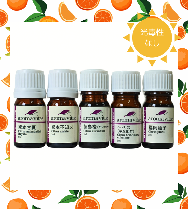 aromavitae国産柑橘精油5本セット(熊本甘夏・熊本不知火・ヘベス・徳島橙・福岡柚子)