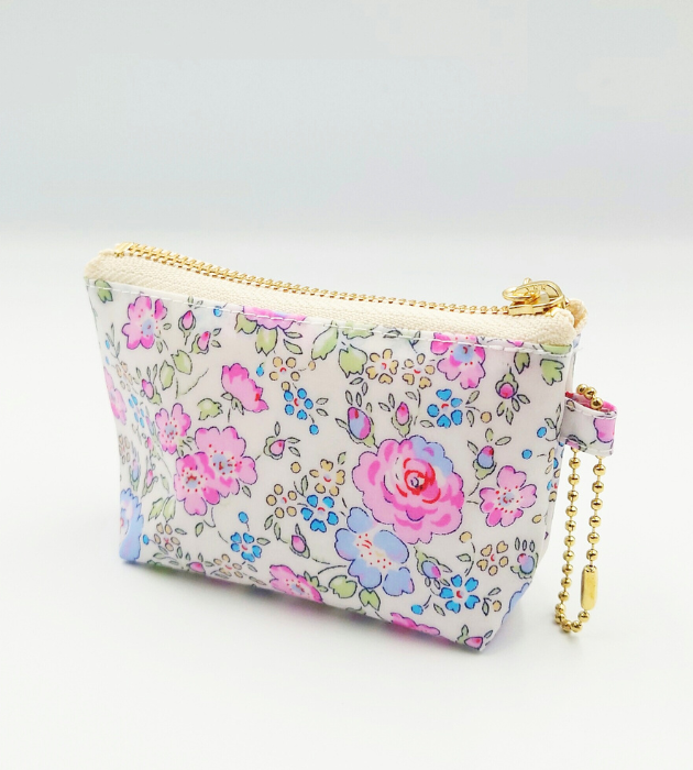 精油ミニポーチ/ホワイト・ピンク/ローズ柄