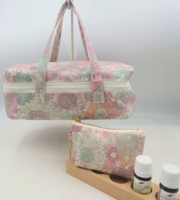 精油バッグ&ミニポーチ付き/ベージュ&ピンク/ひまわり柄