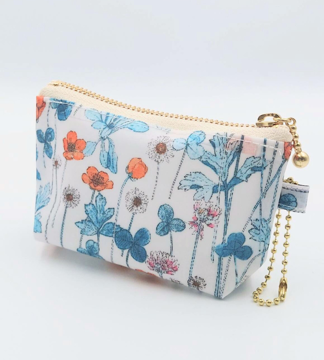 精油ミニポーチ/ホワイト・オレンジ/クローバー小花柄