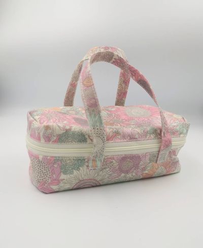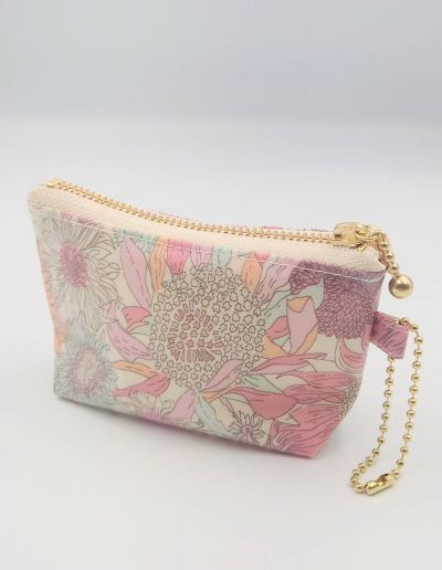 精油バッグ・ミニポーチとも、表地にはLIBERTY/リバティのスモールスザンナのラミネート生地を使用。